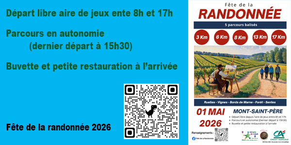La commune de Mont-Saint-Père organise le vendredi 1er mai 2026 la quatrième édition de sa Fête de la Randonnée. Nous