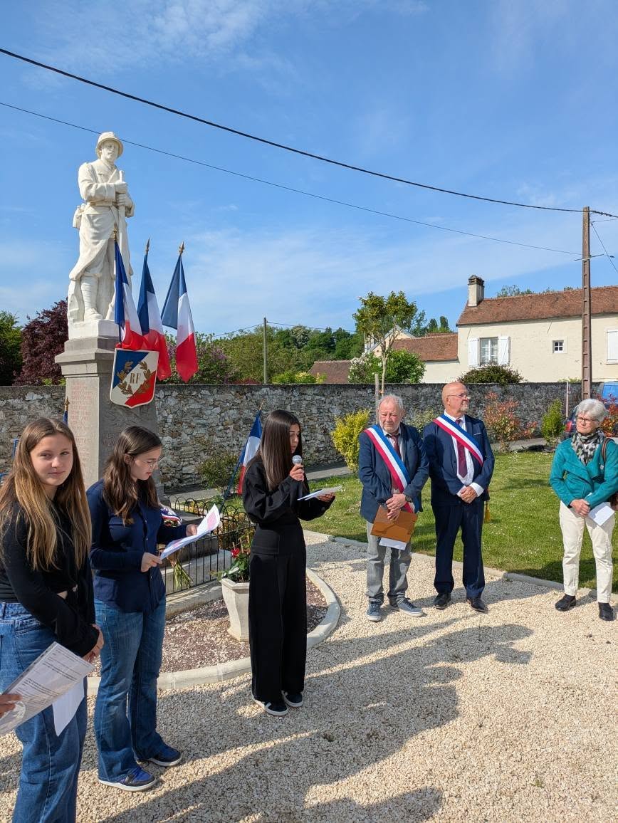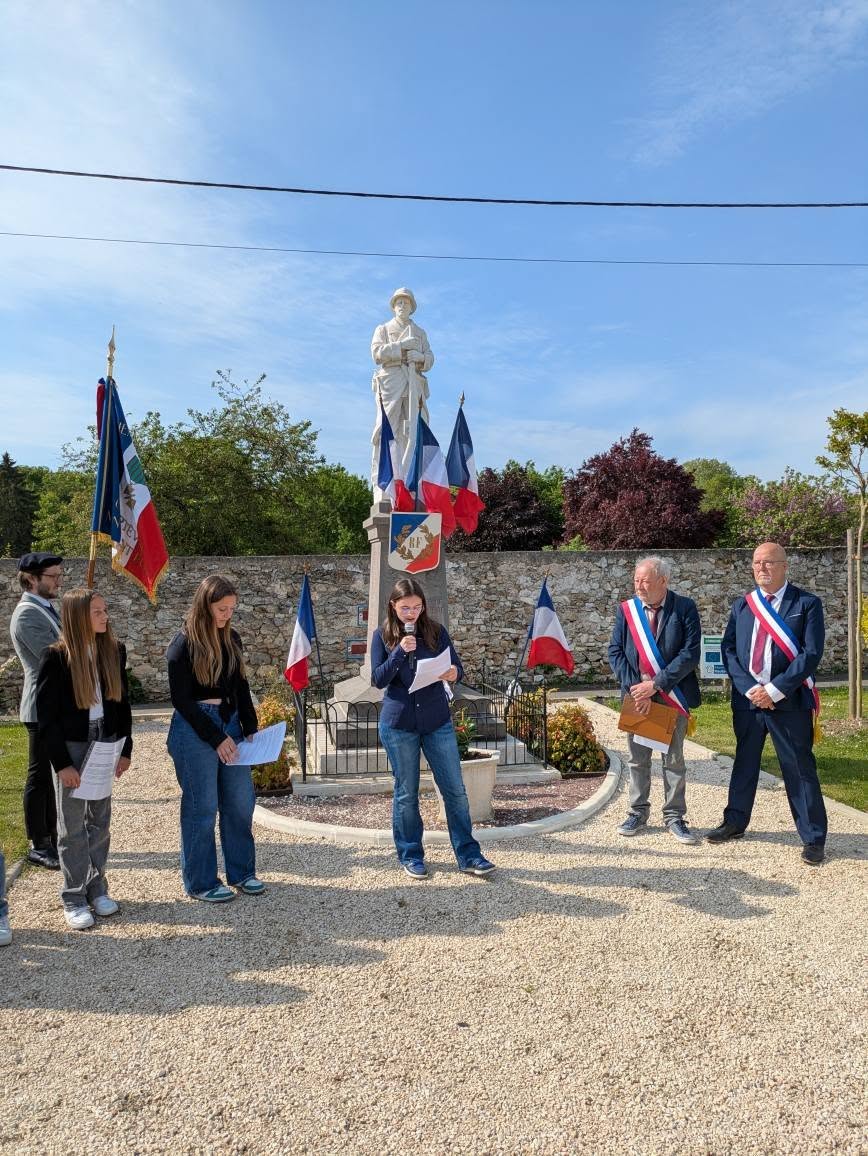 Les collégiens du collège de Condé-en-Brie firent lecture de leur recherche sur nos 3 jeunes de Mont-Saint-Pere et Charteves, engagés volontaires au sein de la 1ere DFL et morts au combat en janvier 45 lors de la bataille de la poche de Colmar. Ce fut ensuite au tour des élèves de notre regroupement scolaire de lire des textes préparés avec leurs enseignants autour de la 2nd Guerre Mondiale.