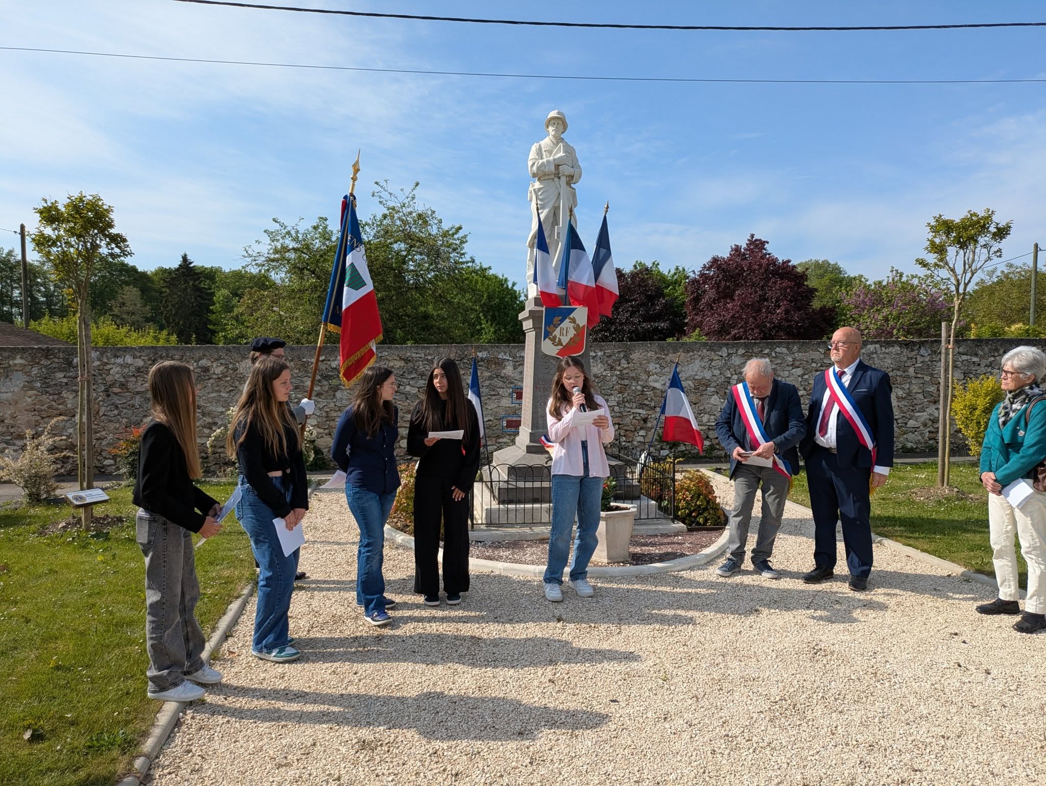 Après lecture des discours officiels par les élus, puis de l’appel aux morts, ce fut à la jeunesse de nos villages de prendre la relève de ce devoir de mémoire.