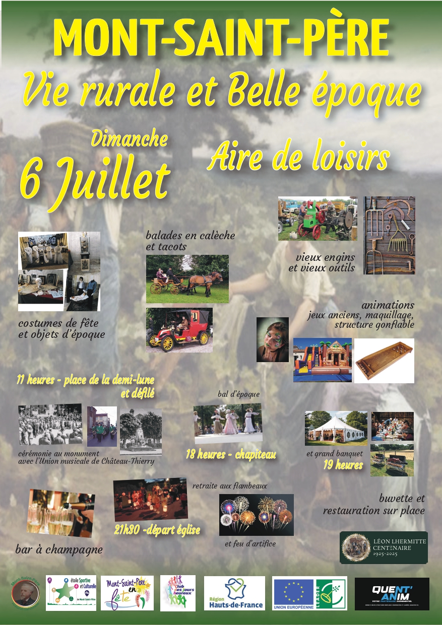Le 6 juillet, des costumes et objets anciens regroupés à l’église et dans les lavoirs, des outils agricoles d’antan, des balades en automobiles et calèches, un bal en costumes nous ont replongé le temps d’une journée dans « la Belle Epoque ». Commémoration, défilé, concert, théâtre, maquillages, jeux, banquet, retraite aux flambeaux et feu d’artifice ont ponctué cette journée bien remplie.