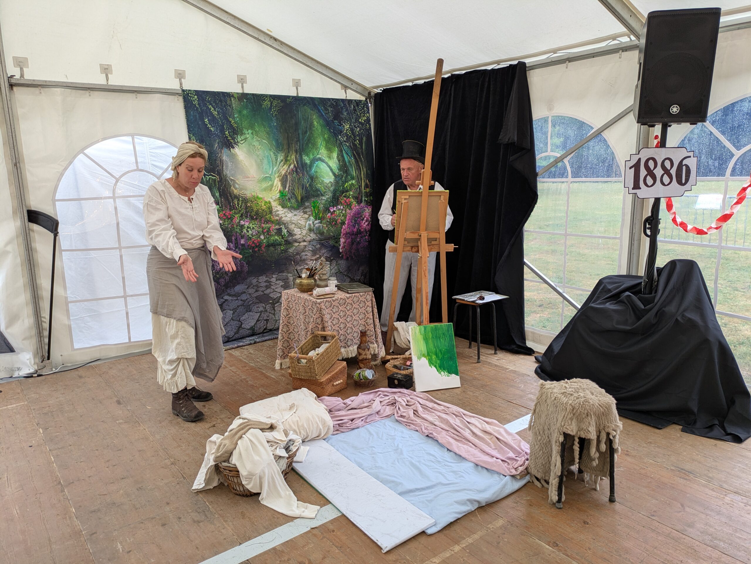 Dans le cadre du centenaire de Léon Lhermitte, la troupe du théâtre la Mascara a replongé le temps de cinq représentations le village de Mont-Saint-Père en l’année 1905. Léon est au sommet de sa renommée, Les habitants nous font partager quelques scènes de leur quotidien dans des saynètes disséminées aux quatre coins du village, accompagnés des tableaux du peintre. Ces habitants sont incarnés par les comédiens professionnels de la troupe, les amateurs de son atelier et d’authentiques habitants.